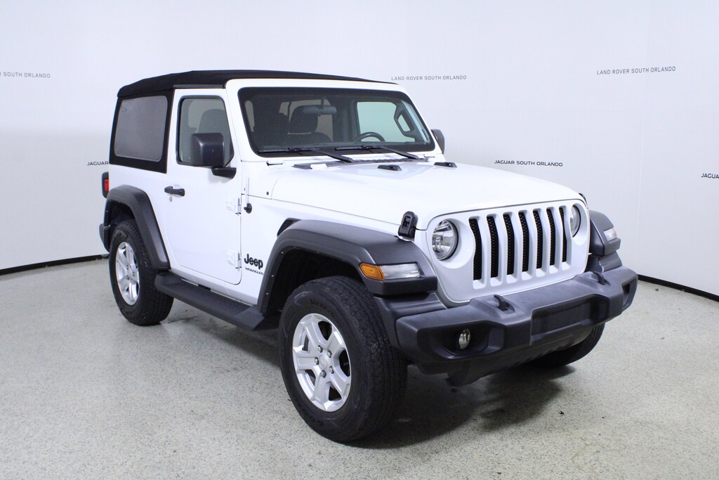QUICK ORDER PACKAGE 22S SPORT S Engine: 2.0L I4 DOHC DI Turbo w/ESS, Transmission: 8-Speed Automatic (850RE), USB Host Flip, Speed Sensitive Power Locks, Automatic Headlamps, Leather Wrapped Steering Wheel, Google Android Auto®, R1234YF A/C Refrigerant, Integrated Center Stack Radio, 7.0 Touchscreen Display, Apple CarPlay®, GPS Antenna Input, Front 1-Touch Down Power Windows, Sport S, Power Heated Mirrors, Security Alarm, Remote Keyless Entry, Sun Visors w/Illuminated Vanity Mirrors, TRANSMISSION: 8-SPEED AUTOMATIC (850RE) Tip Start, Dana M200 Rear Axle, Selec-Speed (TM) Control, CONVENIENCE GROUP Universal Garage Door Opener, SIDE STEPS, PREMIUM BLACK SUNRIDER SOFT TOP, ENGINE: 2.0L I4 DOHC DI TURBO W/ESS. Jeep Sport S with Bright White Clearcoat exterior and Black interior features a 4 Cylinder Engine with 270 HP at 5250 RPM*. Non-Smoker vehicle